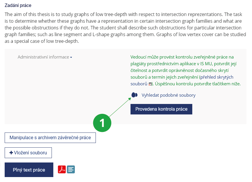 1 Předtím, než vedoucí práce potvrdí, že byla provedena kontrola práce, by měl použít funkci „Vyhledat podobné dokumenty“ a posoudit případnou shodu.