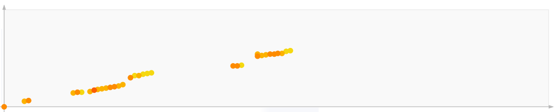 Shluk bodů v pravé horní části textu jsou delší sousloví – citace v seznamu literatury. Může naznačovat, že práce vycházejí z podobných zdrojů, ale o plagiát se v tomto případě nejedná. Víceméně diagonální směr naznačuje, že články jsou odkazovány v podobném pořadí, tříděné podle stejného kritéria (např. rok vydání).