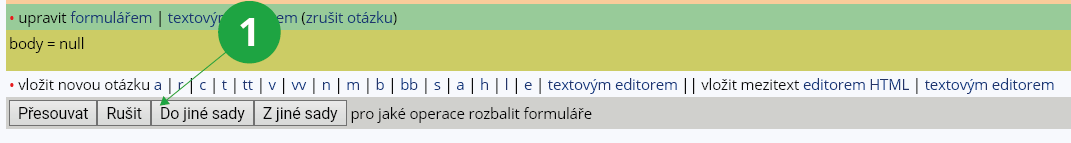Kromě přesouvání otázek v rámci jedné sady je možné přemisťovat a kopírovat otázky i z jedné sady do druhé.