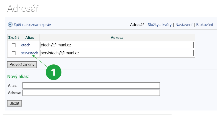 Pomocí adresáře si můžete nadefinovat aliasy pro často používané e-mailové adresy.