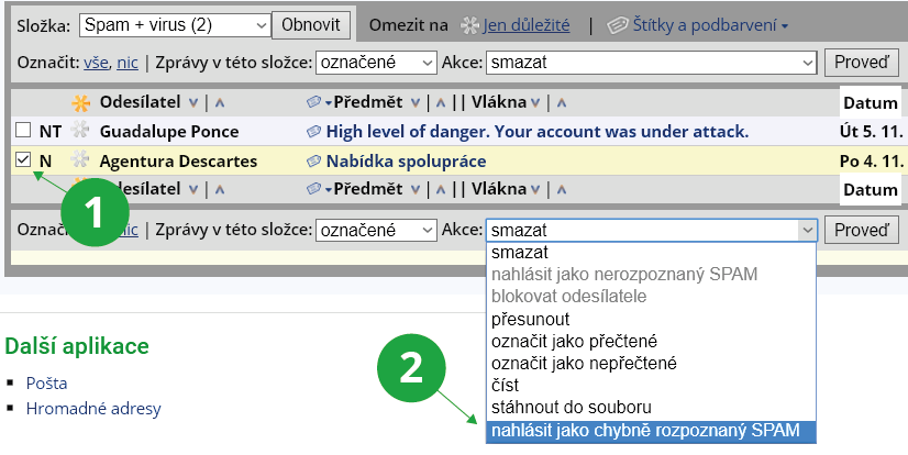 1 Označte dopis, který považujete za spam.