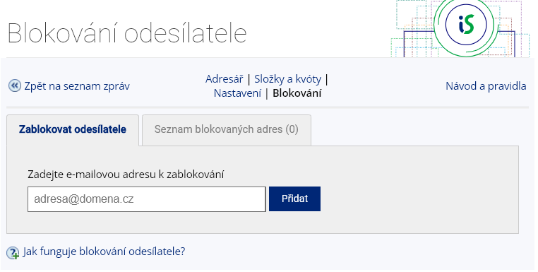 1 Nastavení blokování konkrétních e-mailových adres.