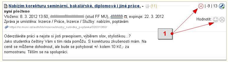 [1] možnosti hodnocení a zobrazení všech hodnocení zprávy
