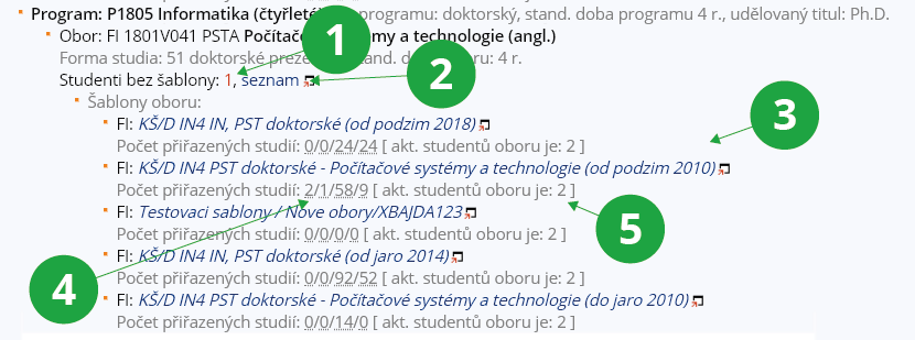 5 Počet aktivních studí daného oboru (bez ohledu na přiřazení šablony studiím).
