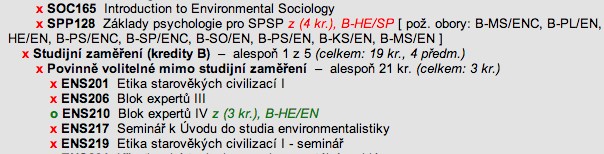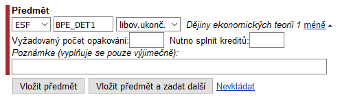 • U jednotlivého předmětu lze také požadovat určitý typ ukončení - pokud si lze předmět zapsat např. se zápočtem nebo se zkouškou, ale pro určitý obor je vyžadováno ukončení zkouškou, vyznačte „zk“. Obvykle se nevyplňuje.