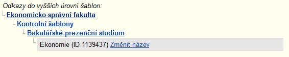 Název aktuální úrovně změníte v horní části stránky. Tato část stránky odkazuje také do vyšších úrovní šablony.