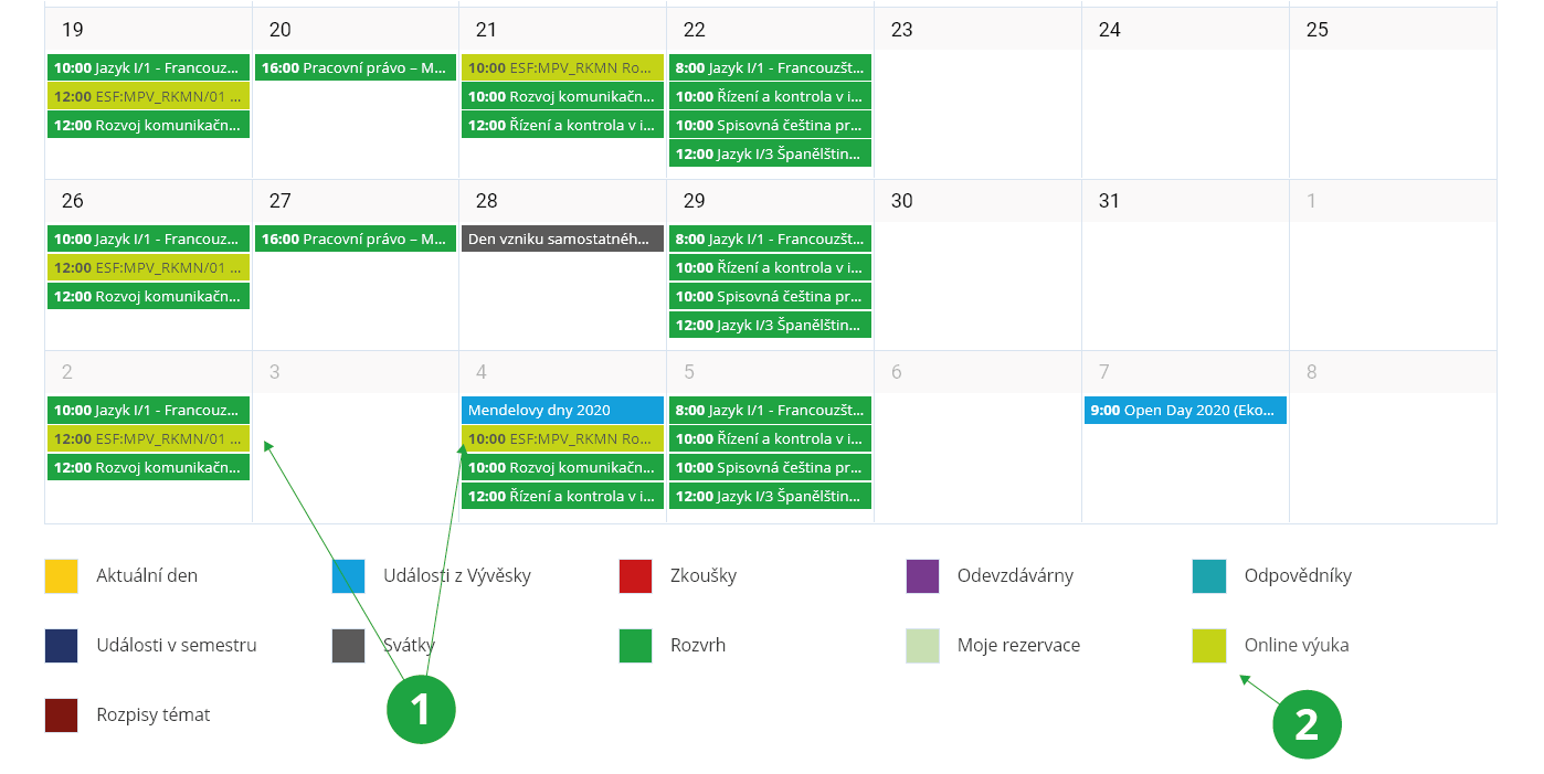 - 1.Kde uvidím, jestli je pro mne naplánová online výuka?Pokud je pro studenta naplánované online setkání v některém z videokonferenčních programů a vyučující tuto informaci zadal do IS VŠHCR, bude naplánovaná událost vidět v kalendáři lidí, kterých se týká: