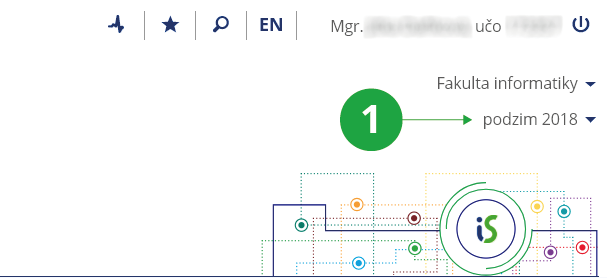 - Je nutné mít vybrané správné období v záhlaví stránky. Změnu provedete kliknutím na současné období a výběrem období, ve kterém chcete registrovat předměty.