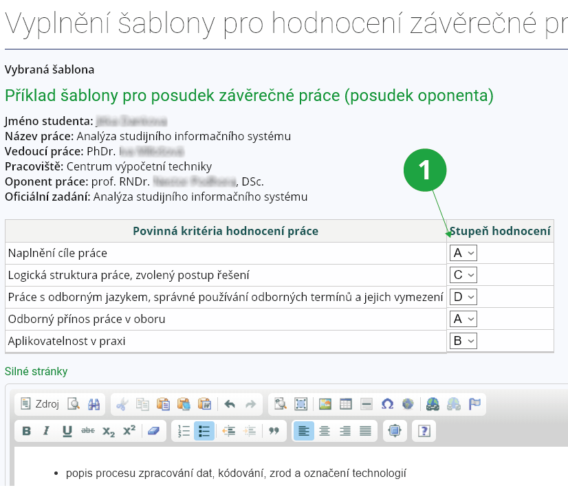 V šabloně posudku vyplňte jednotlivé rubriky.