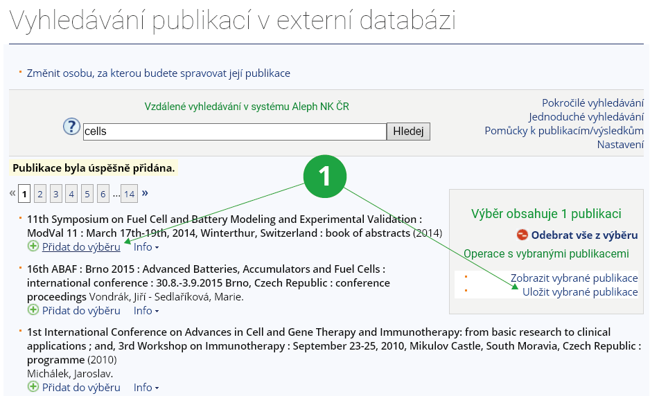 - Zobrazí seznam vybraných publikací.