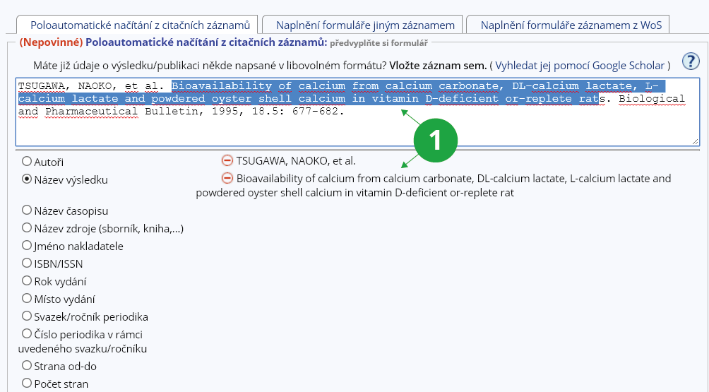 1 Poloautomatické načítání z citačních záznamů.