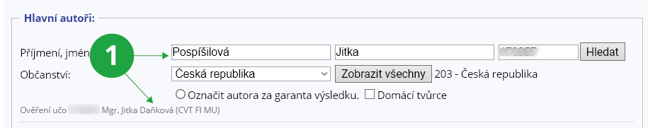 Autorem publikace pro potřeby systému je osoba zadaná číslem učo.