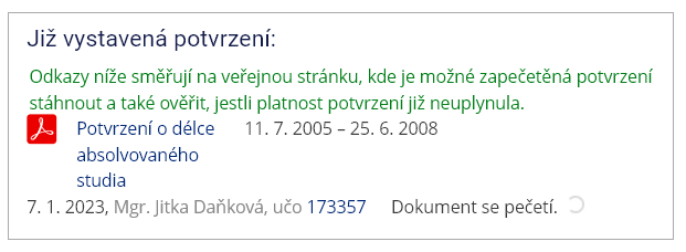 V IS VŠHCR se uživatelé setkají například s elektronickým potvrzení o studiu, které je podepsané elektronickým podpisem.