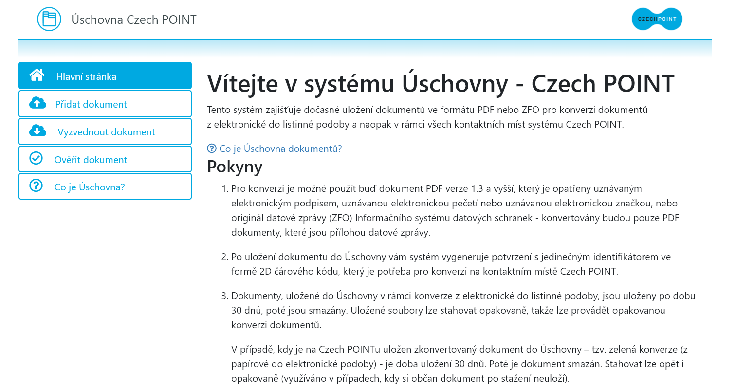 Jako podpůrný systém pro konverzi dokumentů slouží úschovna dokumentů. Úschovna umožňuje dočasné uložení dokumentů v rámci procesu konverze. Úschovna se nachází na adrese
